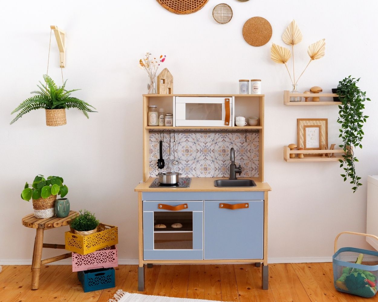 Mit unserer KACHLA Mediterrano in Kombination mit den Griffen aus Leder zauberst du das beliebte Boho Feeling auf deine Kinderküche. Trendfarben für die Türen der IKEA DUKTIG Kinderküche machen den Look perfekt.