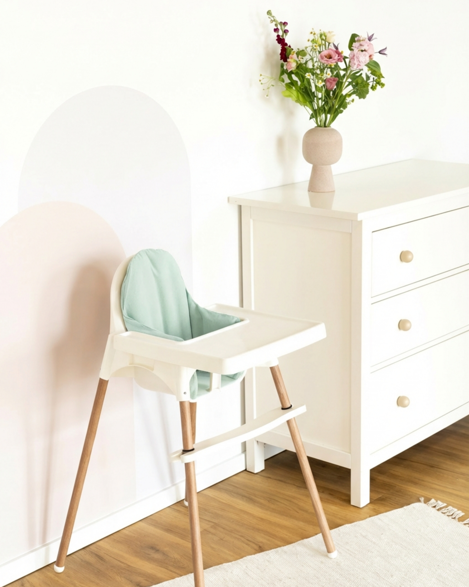 Die KLECKA MAT sorgt nicht nur dafür, dass Teller und Becher sicher an ihrem Platz bleiben, sondern passt auch optisch ideal zu deinem Kissenbezug in Eukalyptus und rundet das Gesamtbild stilvoll ab. Die Silikonmatte für deinen ANTILOP Hochstuhl findest du bei uns im Shop.