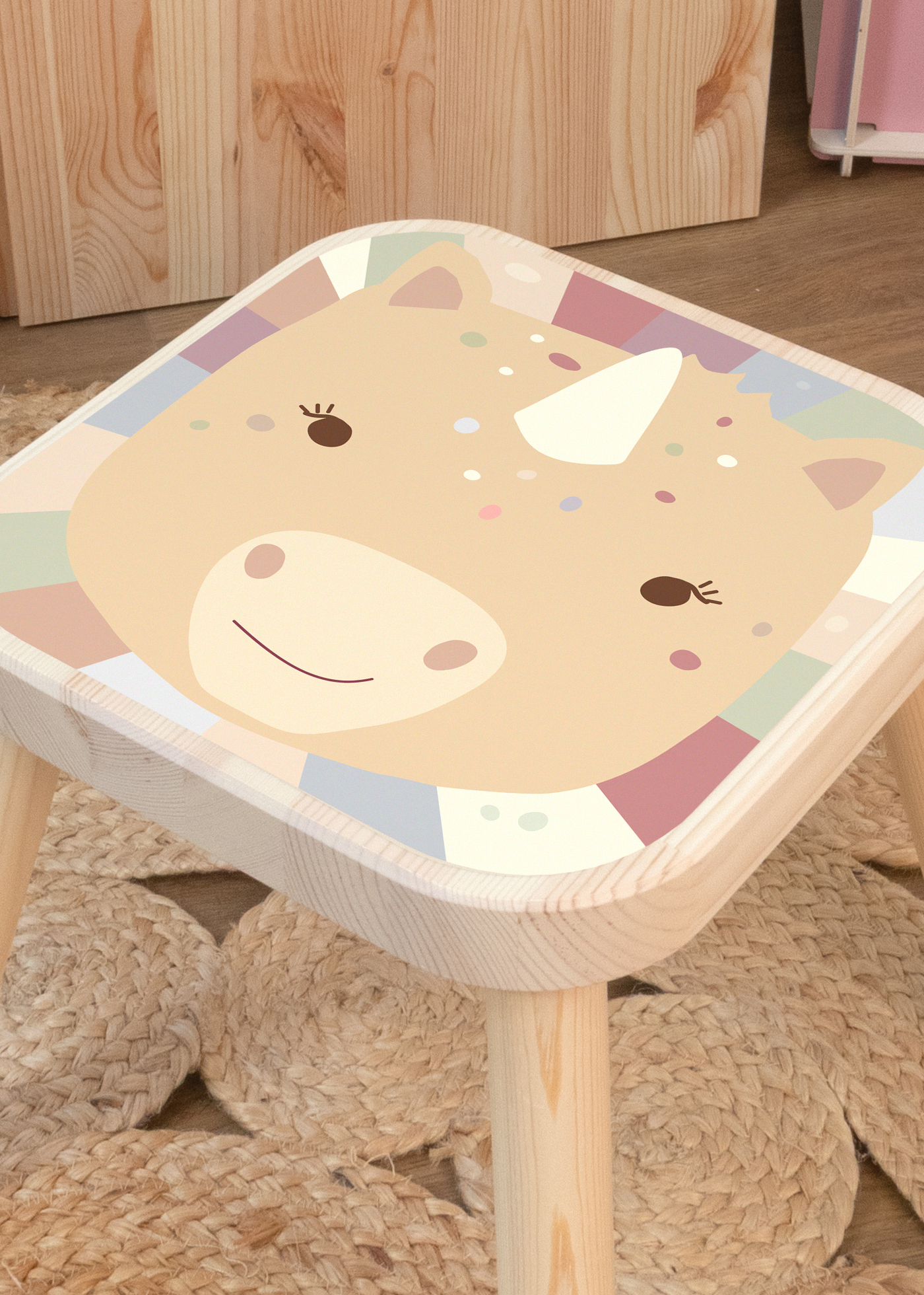 Verleiht deinem Kinderhocker im Handumdrehen eine individuelle Note.