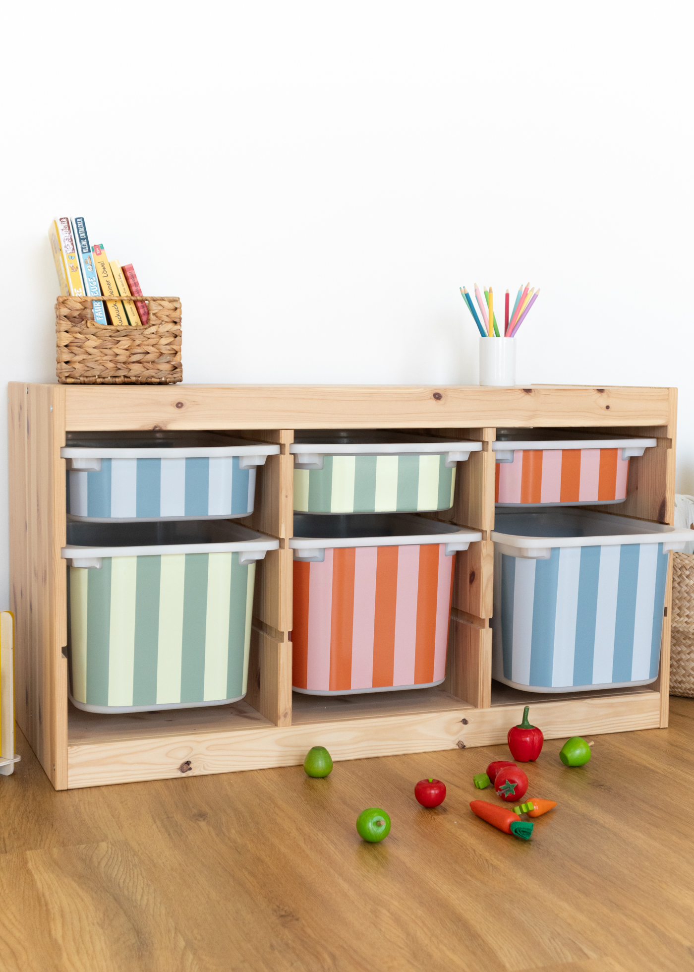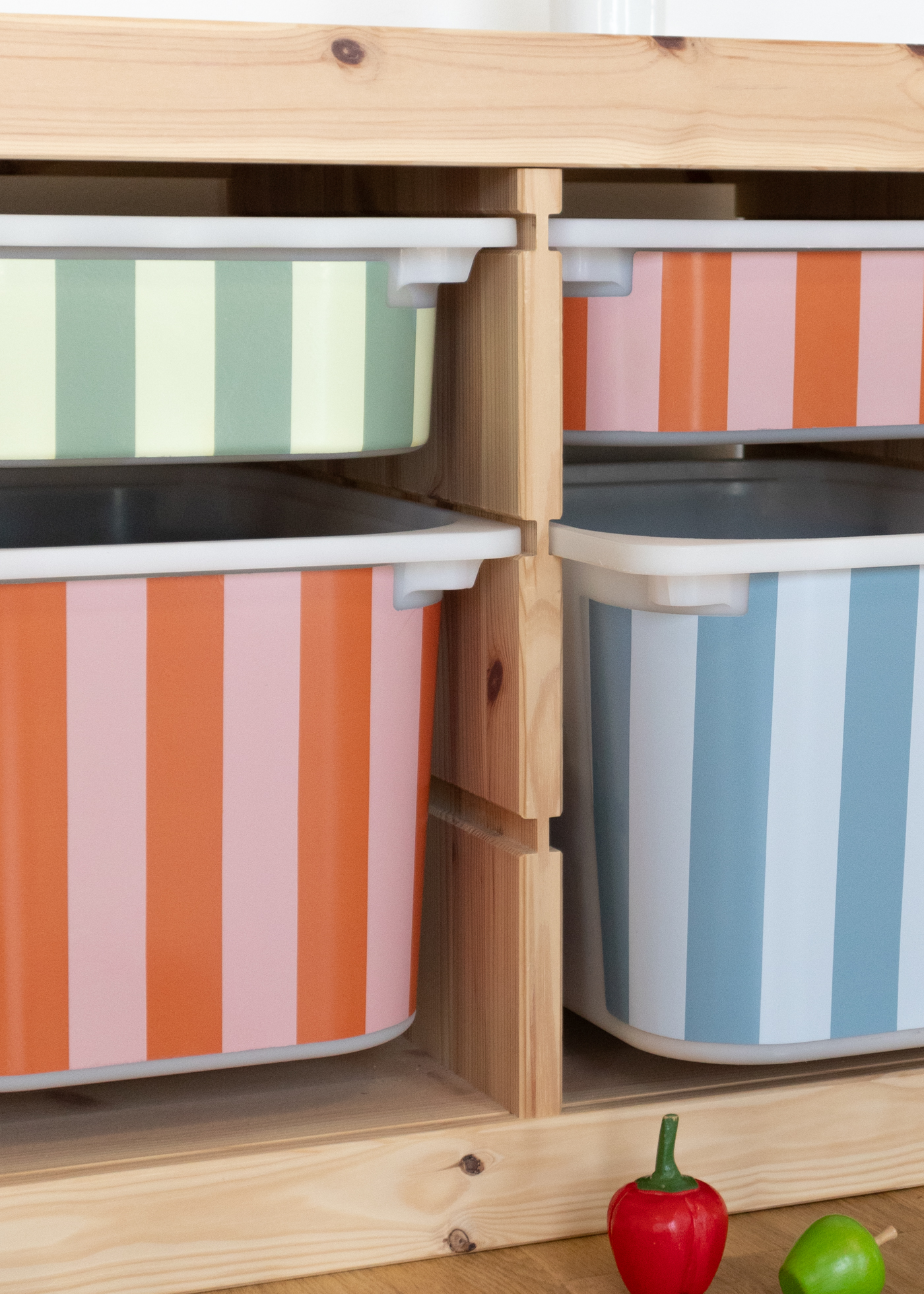 Die Klebefolie bedeckt die Vorderseite der Box.