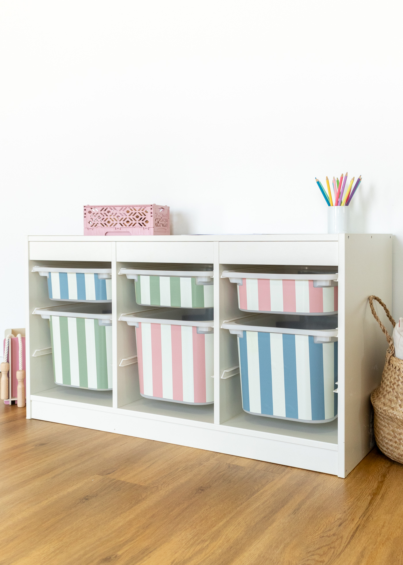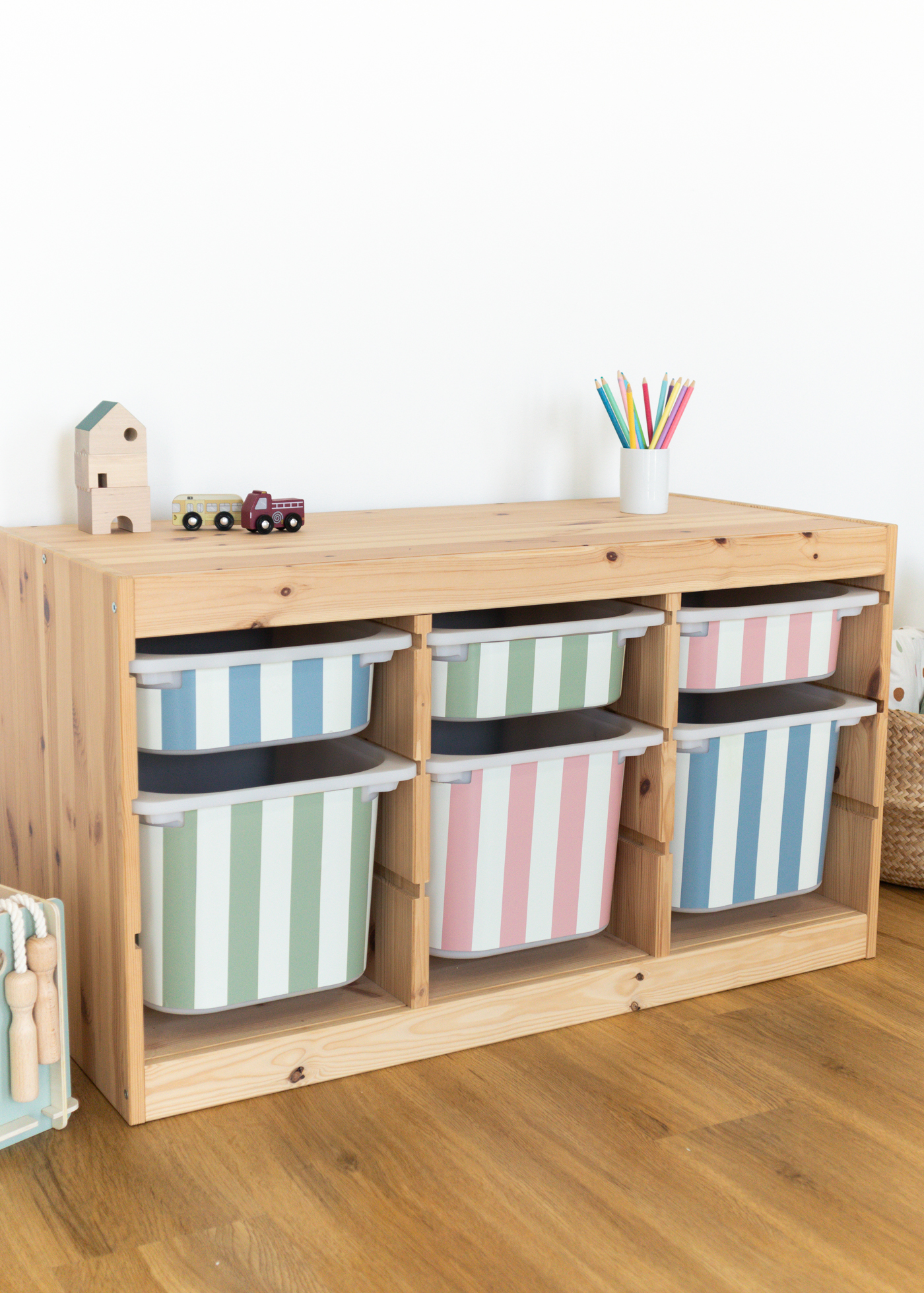 Die Klebefolie bedeckt die Vorderseite der Box.